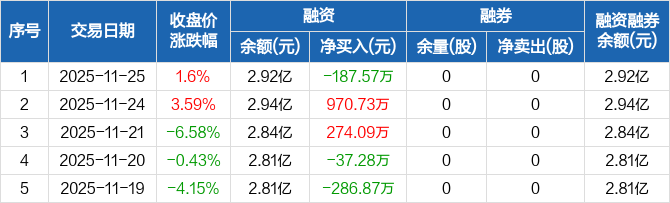 宇环数控:融资净偿还187.57万元,融资余额2.92亿元(11-25)