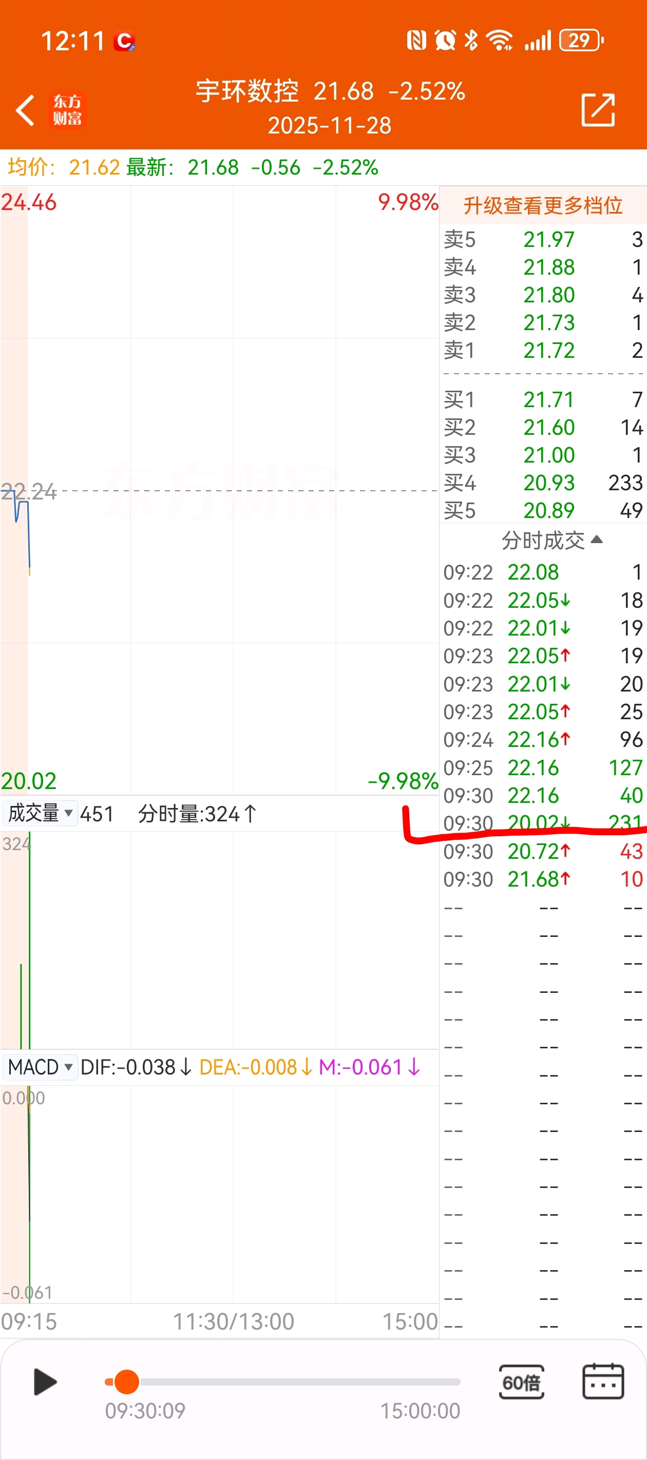 $宇环数控(SZ002903)$ 我说一下,一种推测。有没有一种可能是主力跟这个买家商量好的,挂个跌停价,主力来一个"蜻蜓点水",实际上是换一种方式“贿赂”,只是推测啊,不要当真。不要当真。不要当真。46万多挂跌停价。收盘变五十六万多。巧合巧合,可能真是巧合。