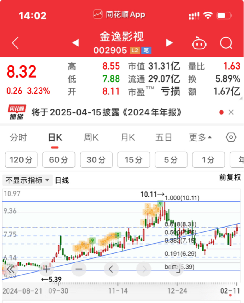 $金逸影视(SZ002905)$ 刚好打到我这跟压力线上,一分钱不少,赶快跑了
