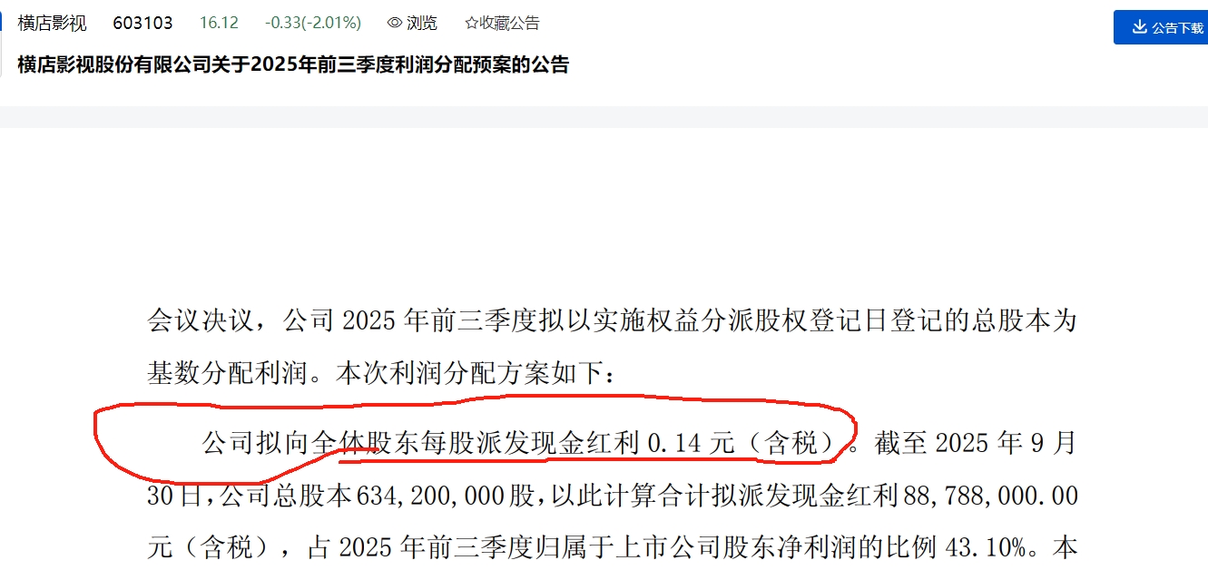 横店影视第三季度营收5.2亿,净利润才300多万,分红0.14元,金逸按照以前市