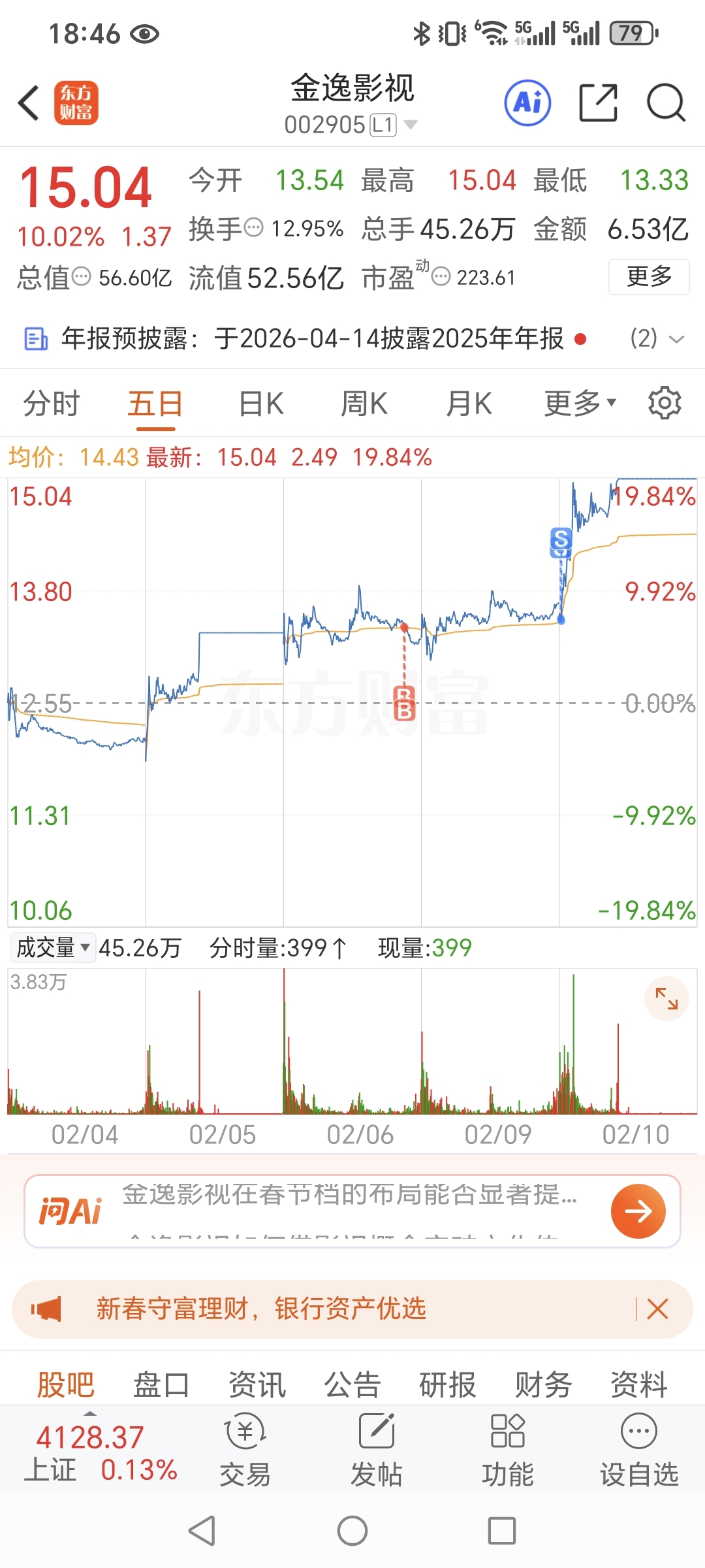 $金逸影视(SZ002905)$ 新手第一次看集合竞价拍断大腿。