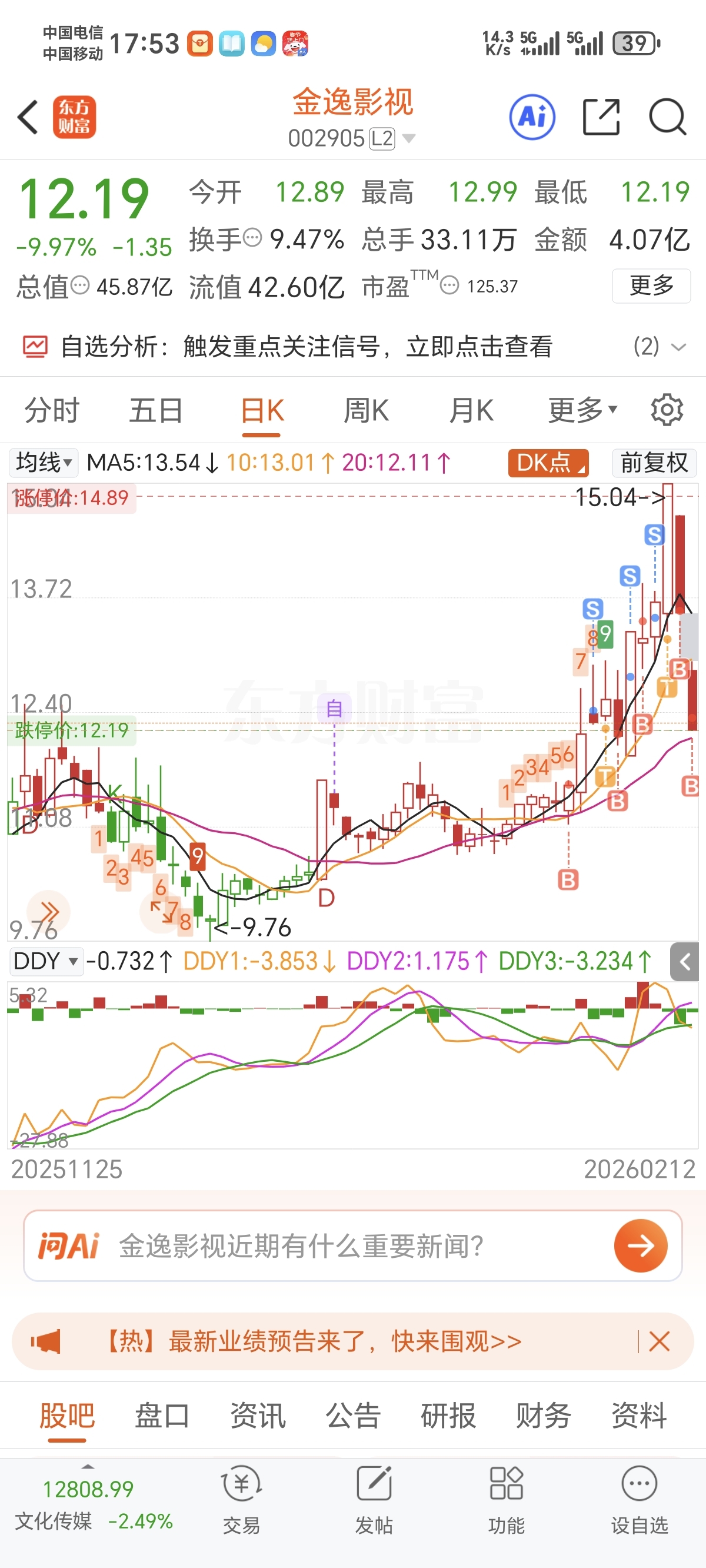 $金逸影视(SZ002905)$ 本来想尾盘做T的,又被埋了,