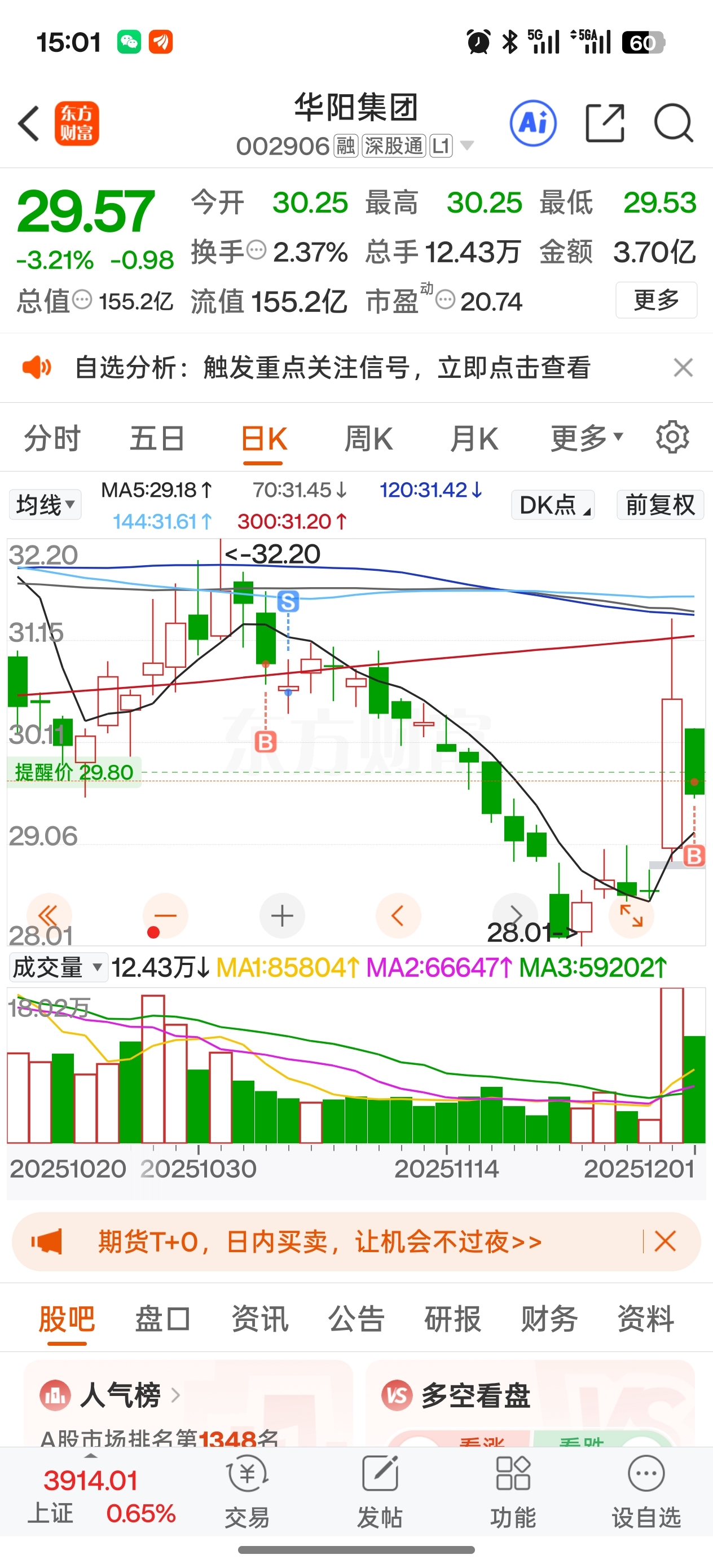 $华阳集团(SZ002906)$ 之前割肉了, 今天又回来了,求主力不杀