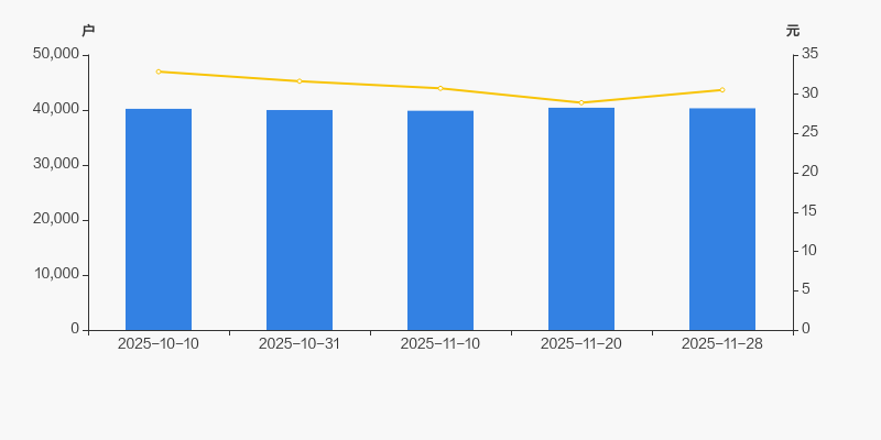 2025年10月10日至今,公司股东户数有所增长,区间涨幅为0.23%。2025年10月10日至2025年11月28日区间股价下降7.09%。