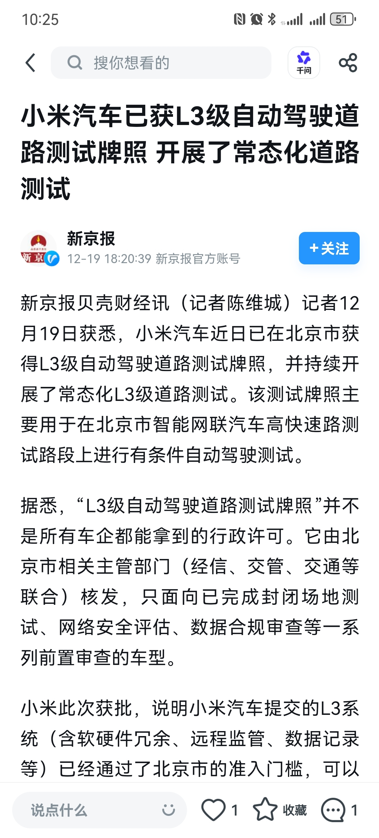 小米汽车获得L3自动驾驶牌照,华阳小米合作伙伴下周雄起