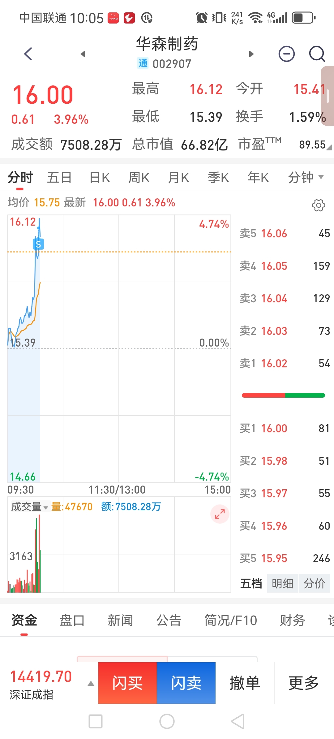 $华森制药(SZ002907)$ 16.06小赚卖掉了