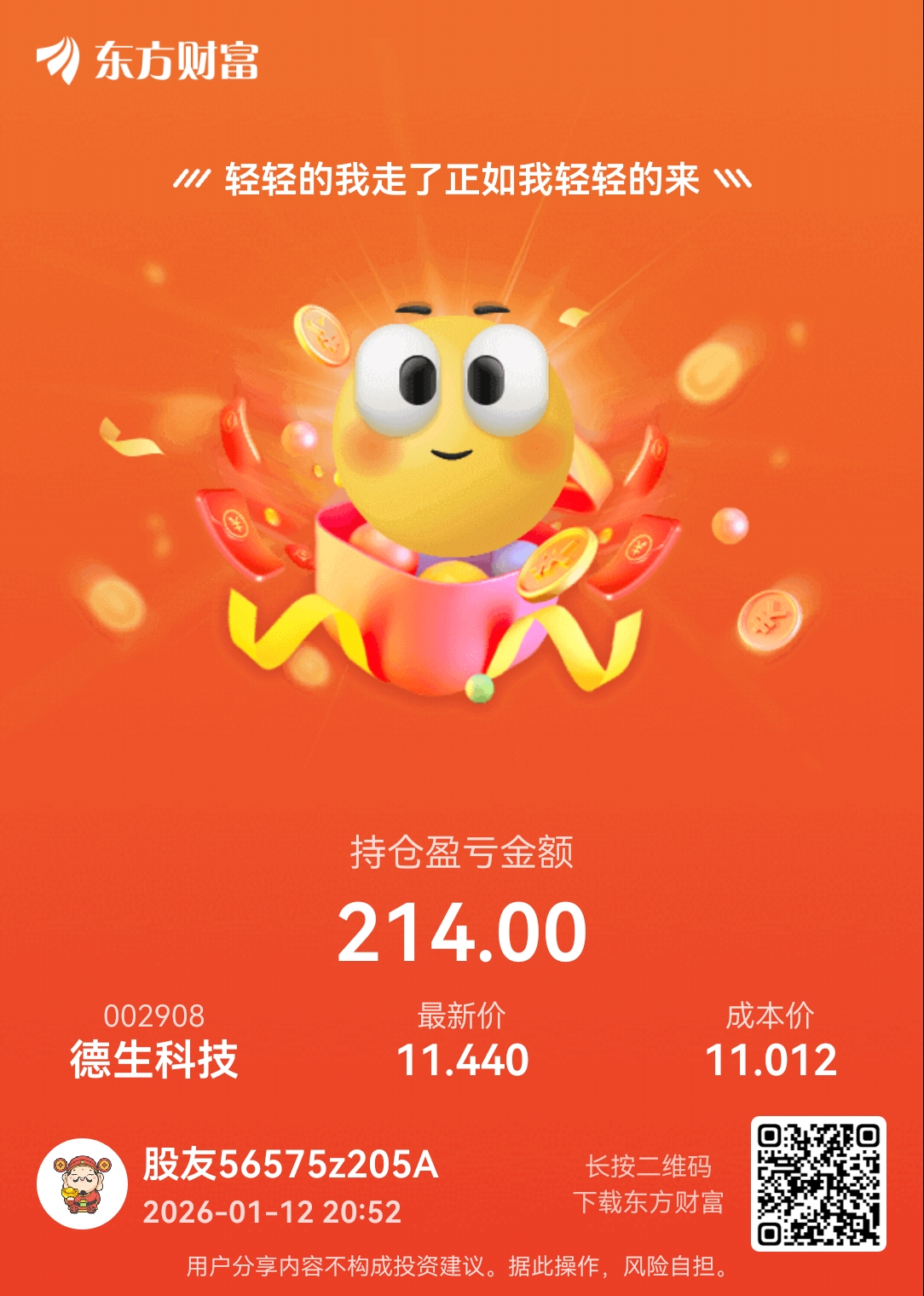郑重声明:用户在财富号/股吧/博客等社区发表的所有信息(包括但不限于文字、视频、音频、数据及图表)仅代表个人观点,与本网站立场无关,不对您构成任何投资建议,据此操作风险自担。请勿相信代客理财、免费荐股和炒股培训等宣传内容,远离非法证券活动。请勿添加发言用户的手机号码、公众号、微博、微信及QQ等信息,谨防上当受骗!