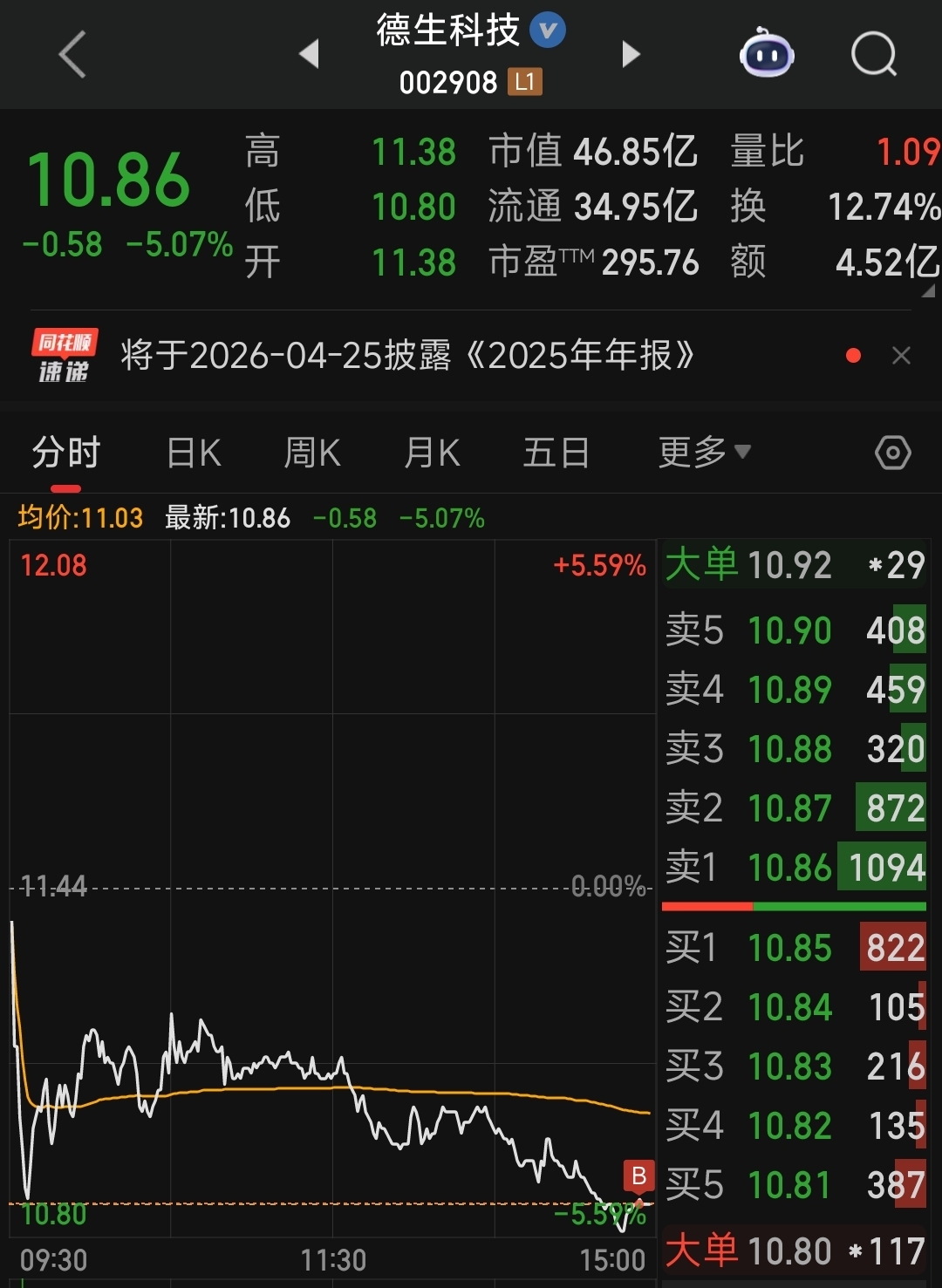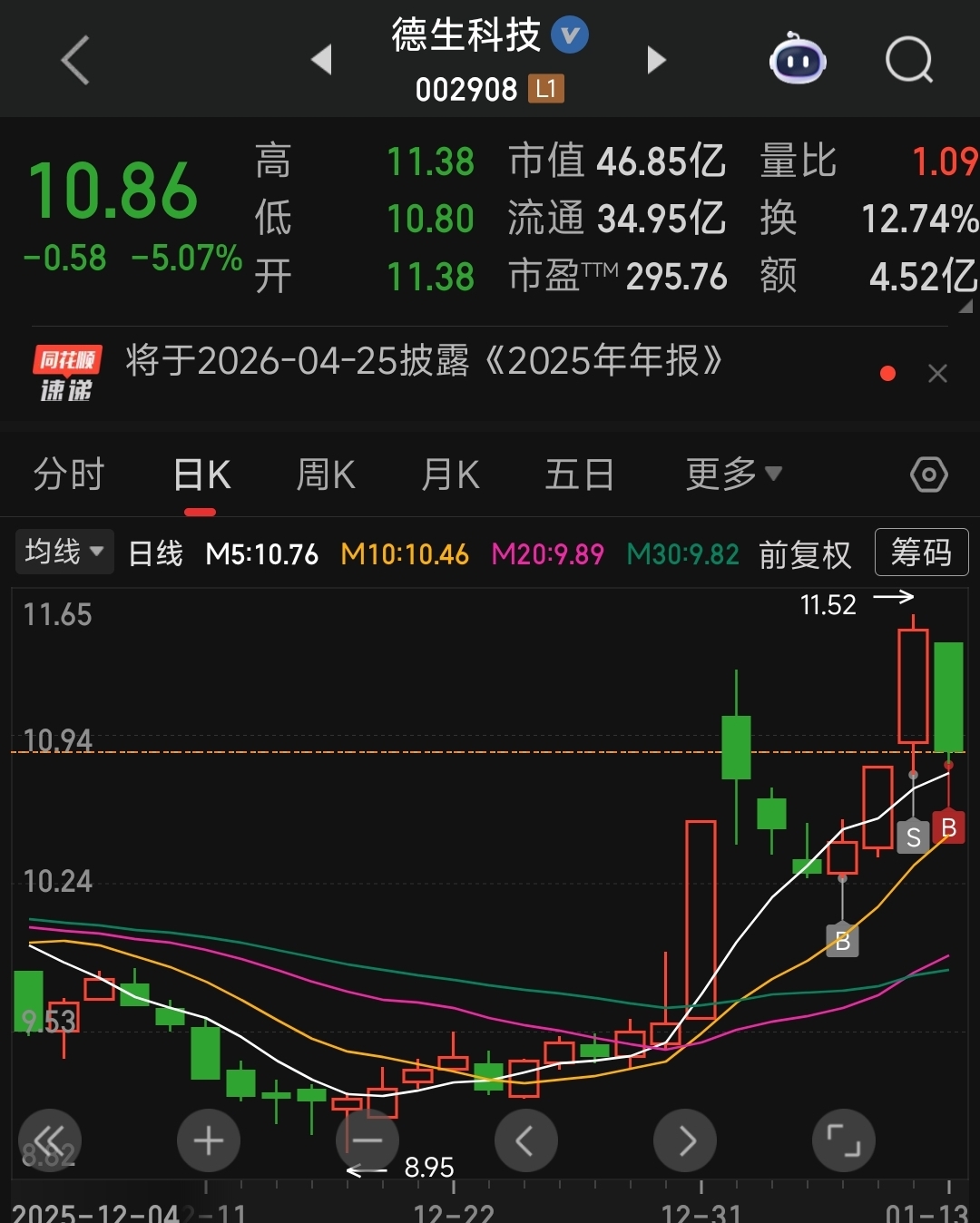 昨天尾盘建仓(详见昨晚发的下述文章:尾盘偷袭建仓德生科技,车上的朋友,一起聊聊这个票),今天全天强势,连大盘盘中跳水都不怎么跟,足见其走势有多稳,量价齐升,筹码集中度进一步提升,有连板预期。