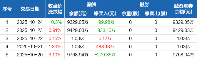 集泰股份:融资净偿还99.98万元,融资余额9329.05万元(10-24)