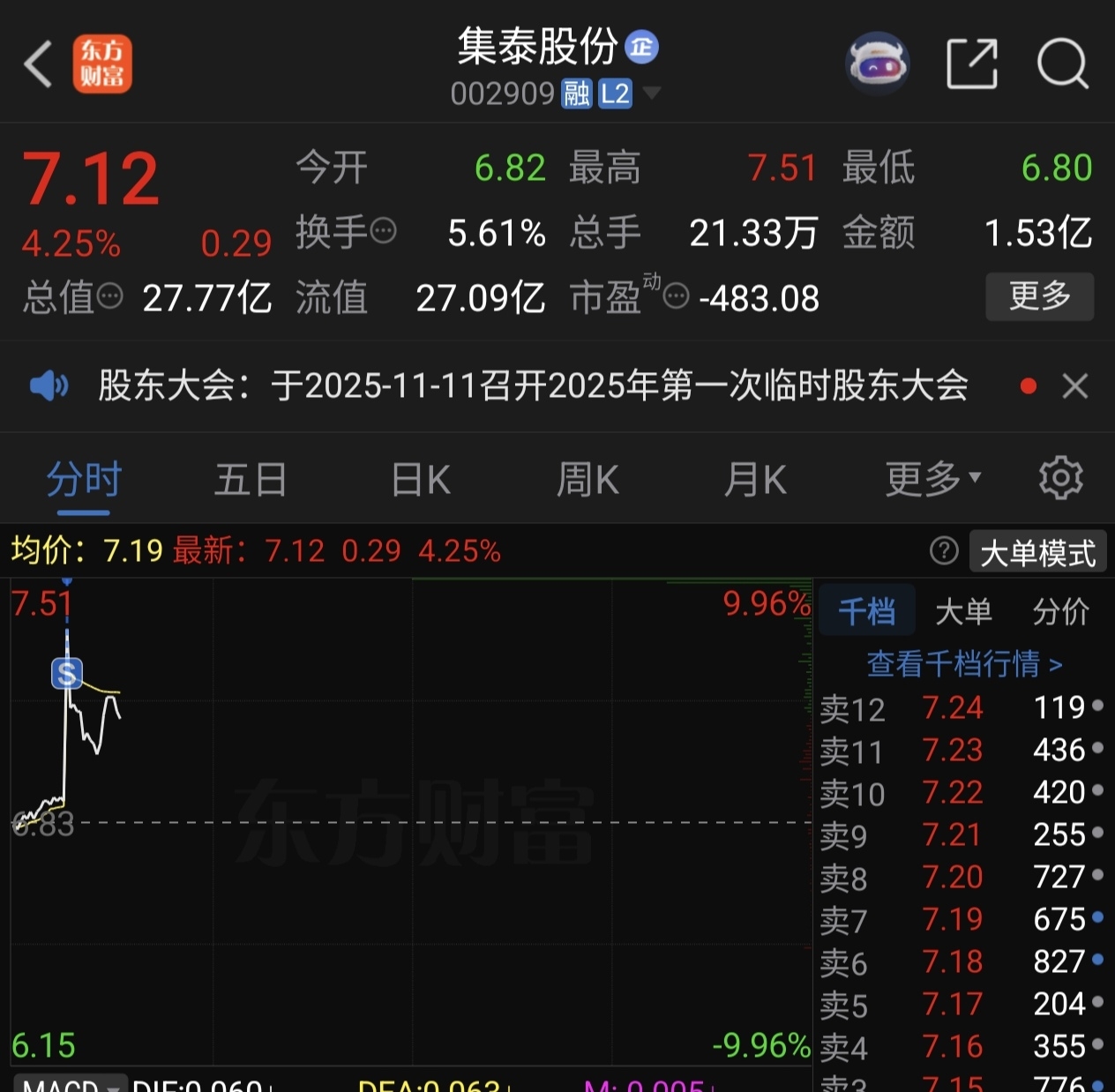 $集泰股份(SZ002909)$ 挂的涨停 没想到有惊喜