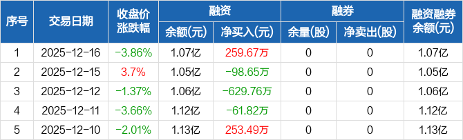 集泰股份:融资净买入259.67万元,融资余额1.07亿元(12-16)