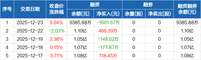 集泰股份:融资净偿还1601.67万元,融资余额9385.88万元(12-23)