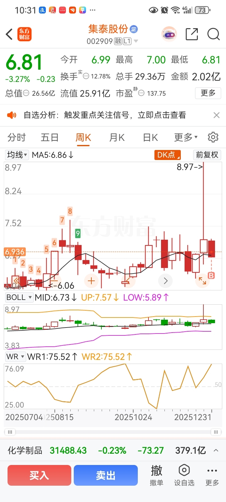 $集泰股份(SZ002909)$ ”周线压力8.94,套牢盘多抛压大,12月份最后一周洗盘,积聚力量,只等东风一吹,随时上攻,我不悲观。,也不太乐观,春节前到九元有很大可能