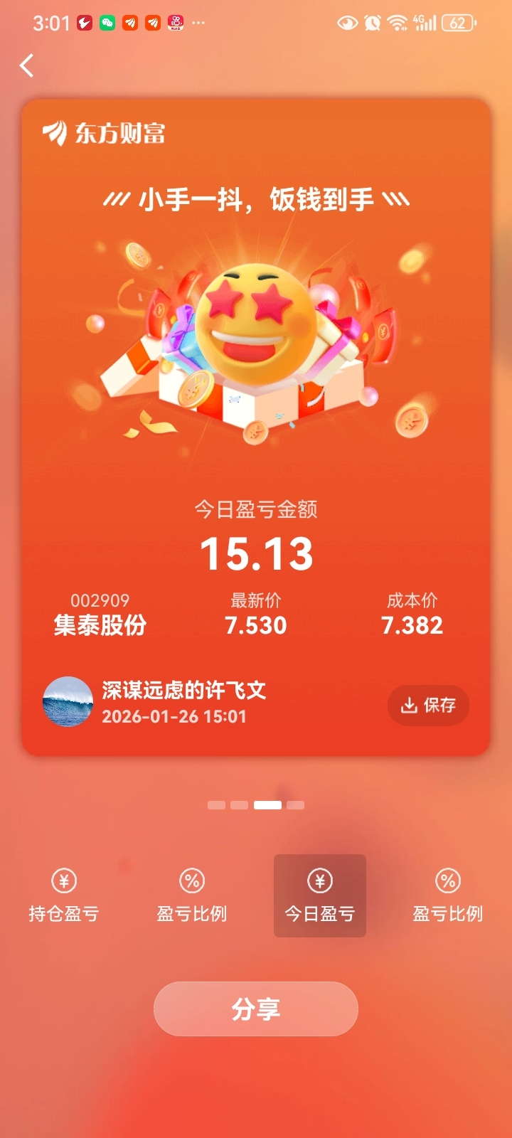 $集泰股份(SZ002909)$ 今天手里几票,乐山电力,亏,永太,浮盈,集泰浮盈,芯片,亏。今日收益大亏