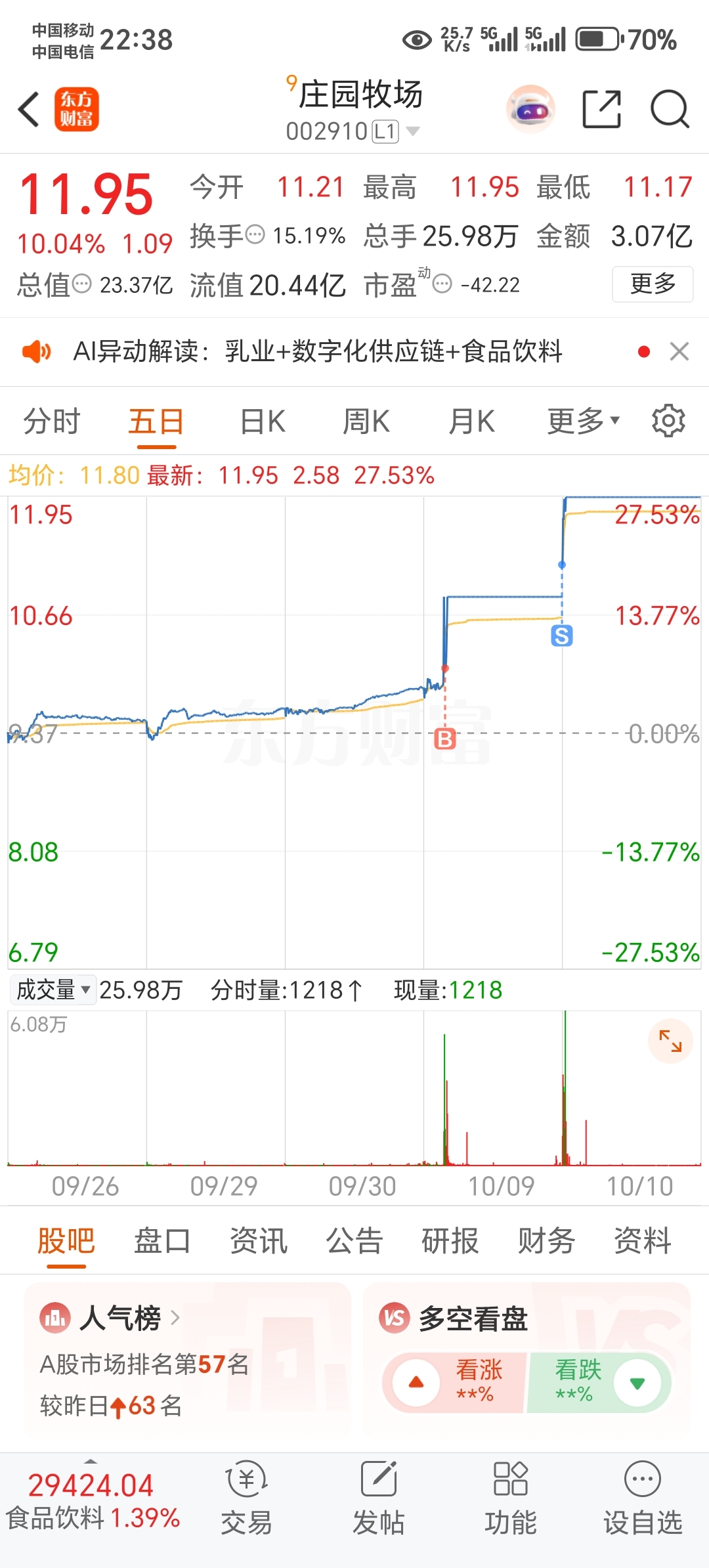 $庄园牧场(SZ002910)$ 怎么改变这种赚点就跑的操作和心态????#炒股日记# #收盘点评#