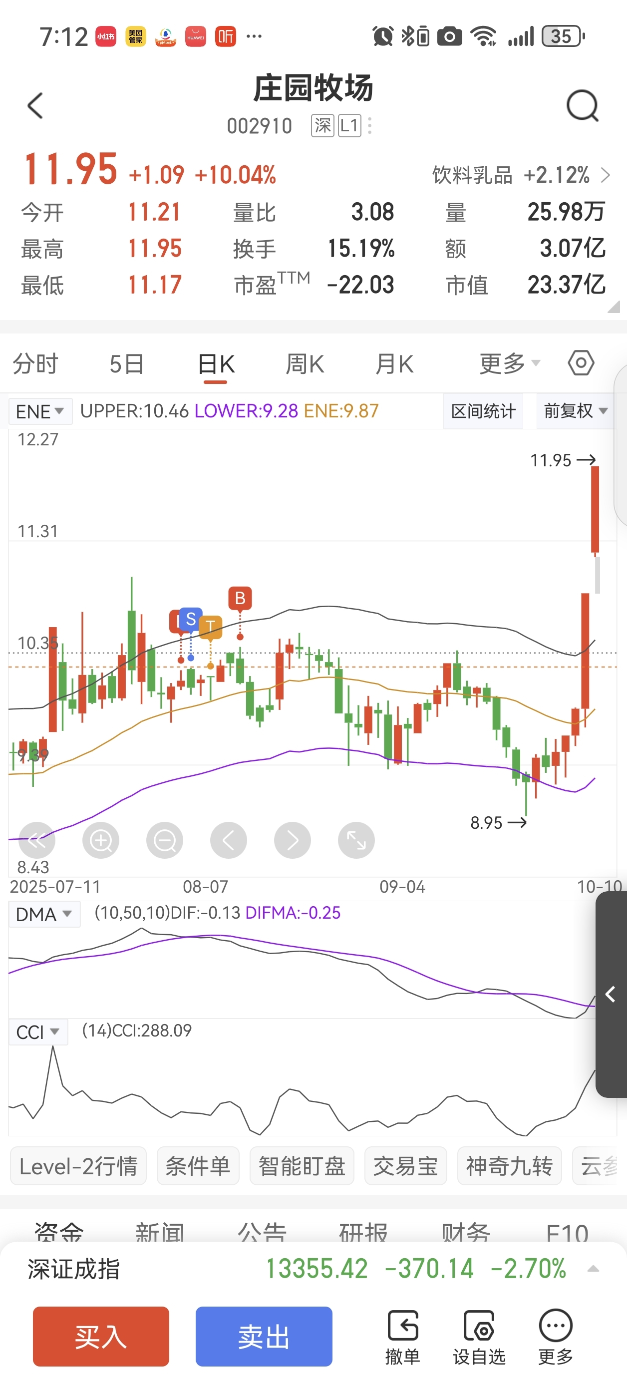$庄园牧场(SZ002910)$ 35W埋伏成功