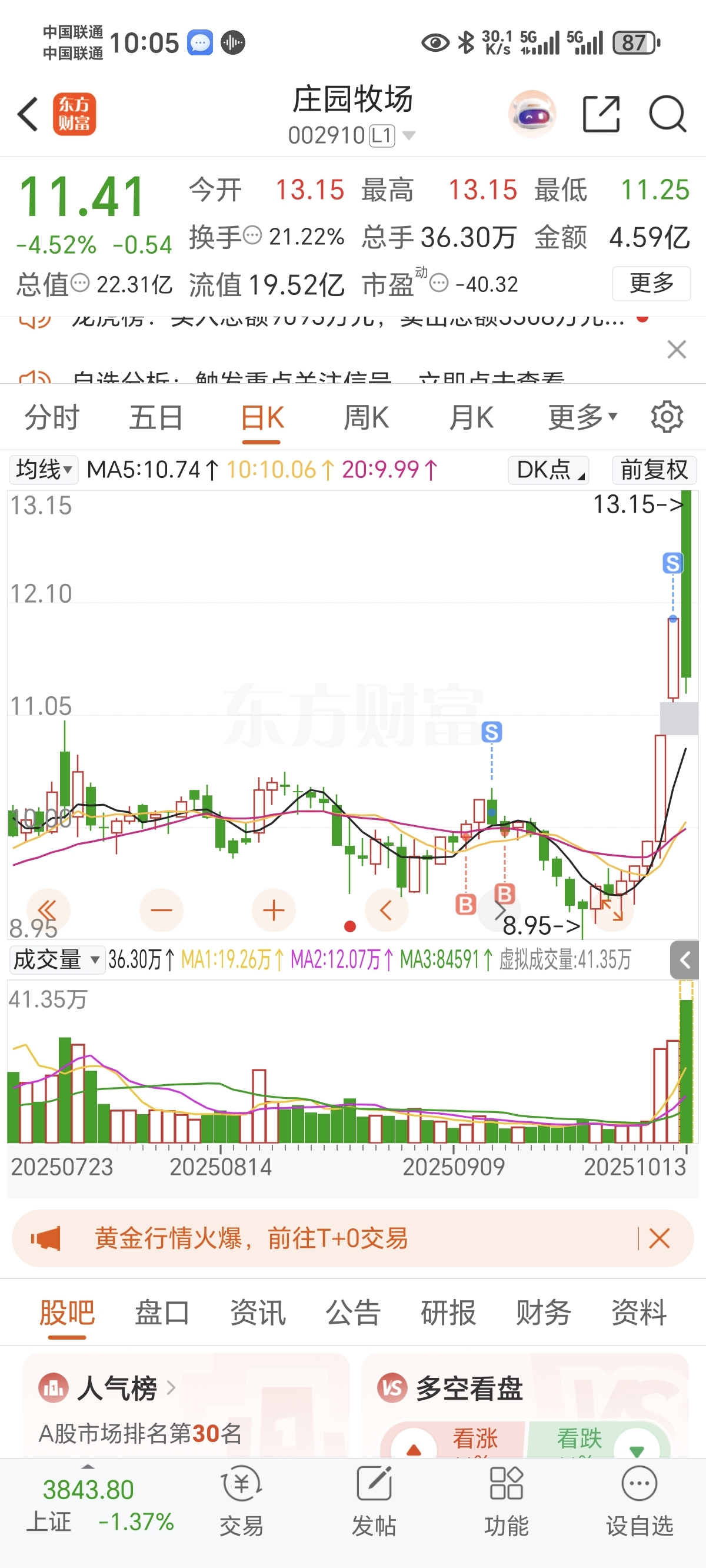 $庄园牧场(SZ002910)$ 三哥的票真狠