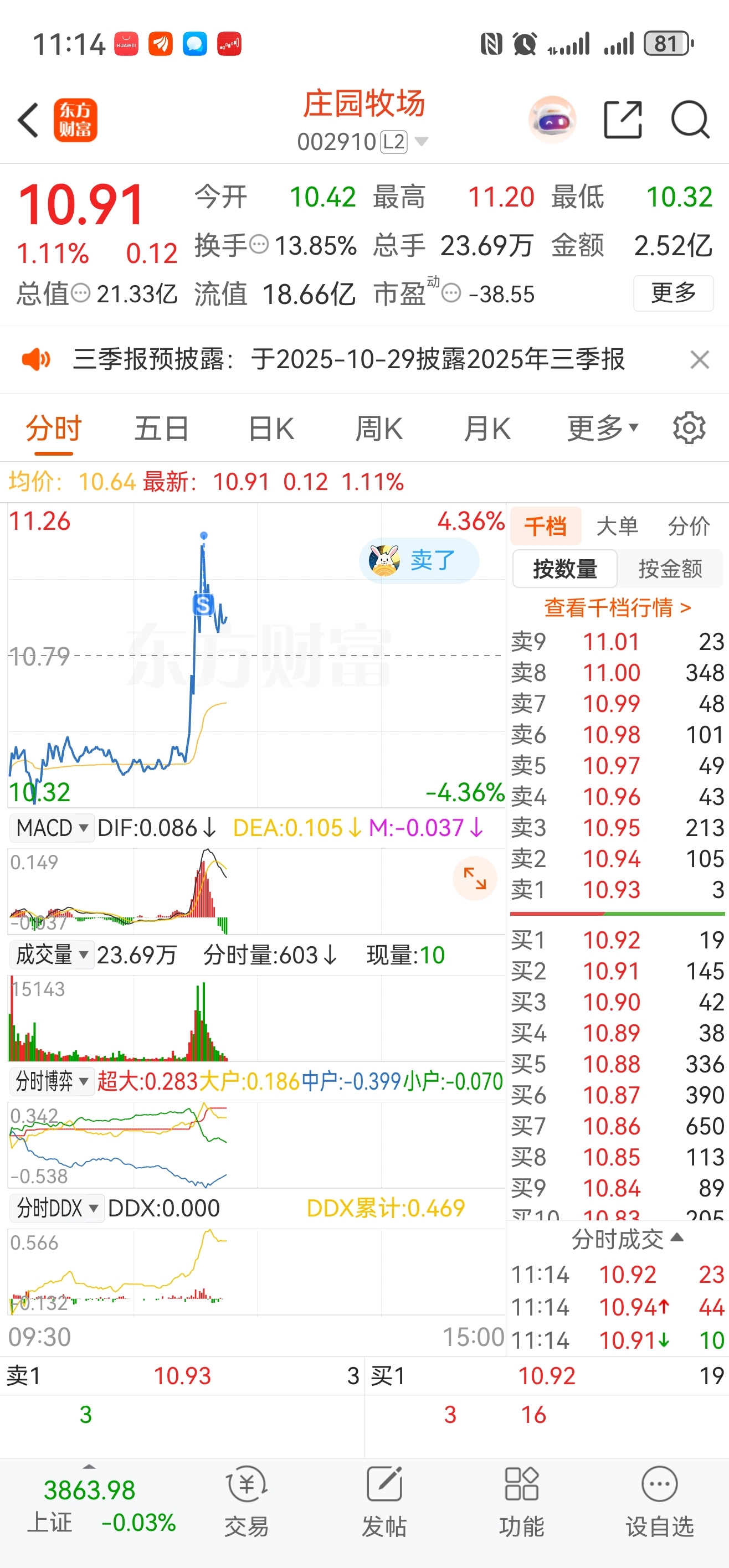 $庄园牧场(SZ002910)$ 感恩的心,解套小赚1200,再见