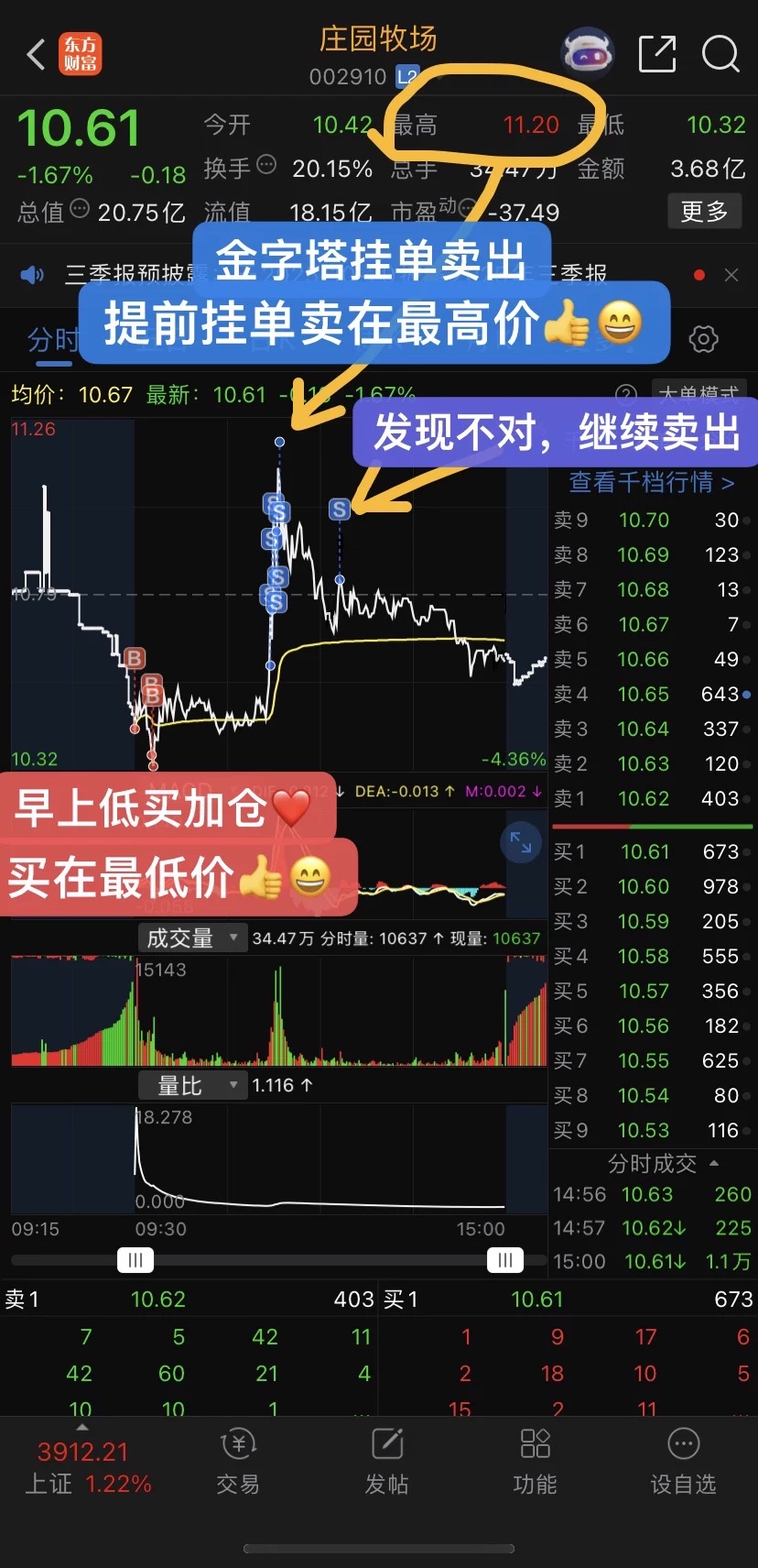 今天大部分人都是高抛低吸的,只有2位徒弟先赚钱清仓了,一位赚了1000元,一位赚