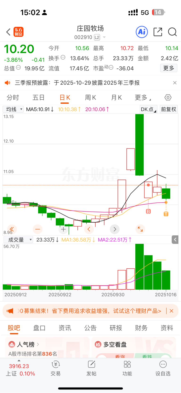 $庄园牧场(SZ002910)$ 明天暴跌吧,浮动太小了 T都T不动!