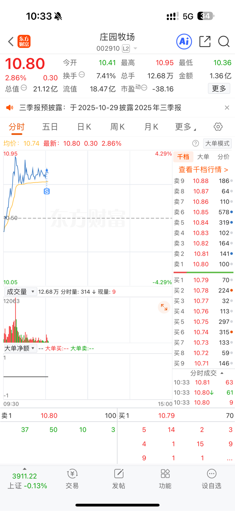$庄园牧场(SZ002910)$ 先走了,气氛真差,做T确实很爽,深坑再接