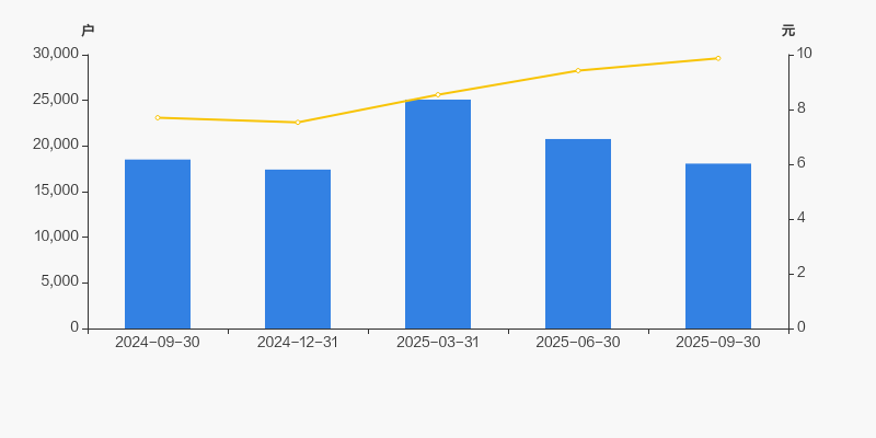 截至2025年9月30日,公司最新A股总股本为1.96亿股,其中流通股本为1.71亿股。户均持有流通股数量由上期的8238股上升至9467股,户均流通市值9.34万元。