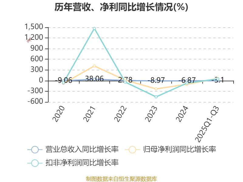 资产重大变化方面,截至2025年三季度末,公司存货较上年末减少23.65%,占公司总资产比重下降1.93个百分点;在建工程合计较上年末增加1191.75%,占公司总资产比重上升1.07个百分点;应收票据及应收账款较上年末增加35.72%,占公司总资产比重上升0.88个百分点;固定资产较上年末减少5.15%,占公司总资产比重下降0.87个百分点。