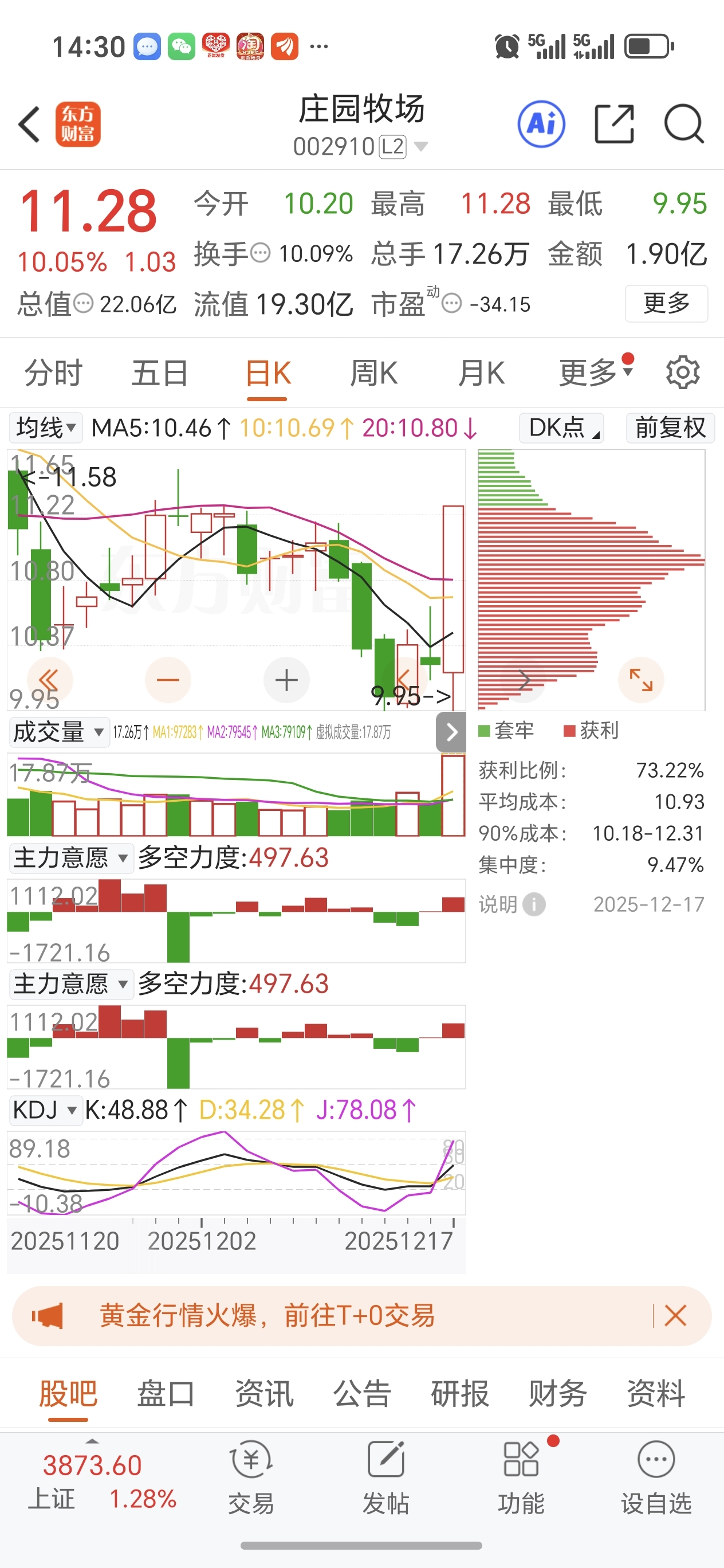 $庄园牧场(SZ002910)$ 等你等得好辛苦,明天再大涨,我就能赚钱