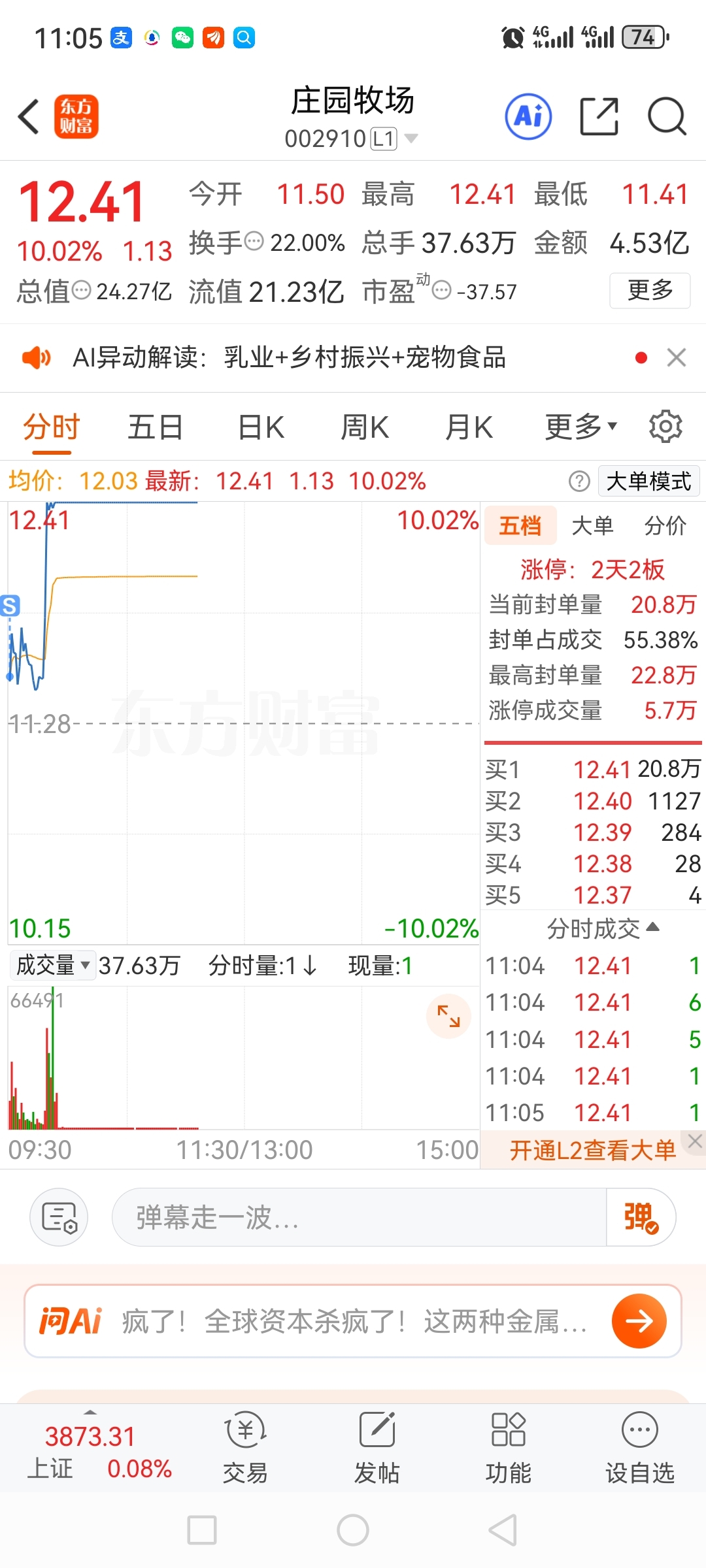 $庄园牧场(SZ002910)$ 最低位卖了,美股吓到我了