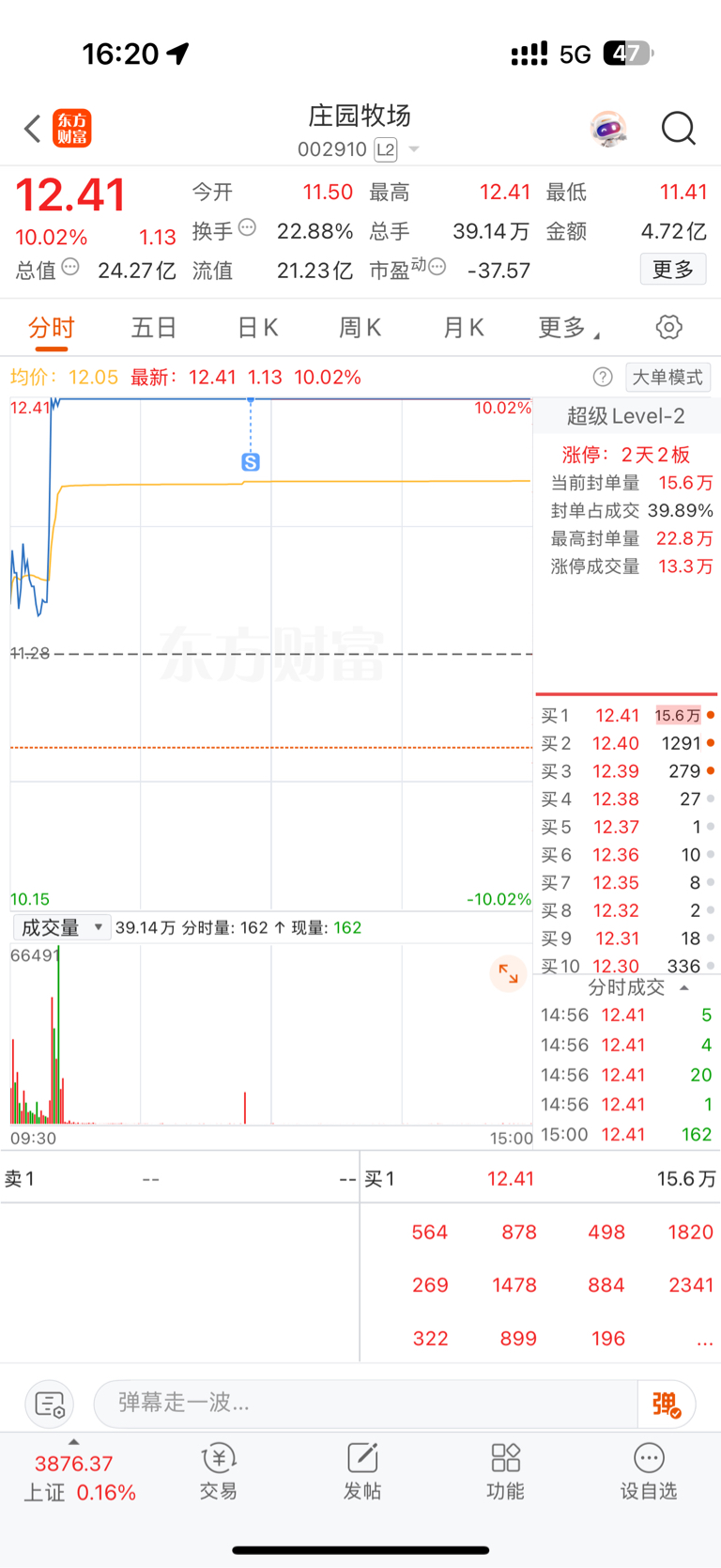 $庄园牧场(SZ002910)$ 今早清仓了。正常情况不会卖飞