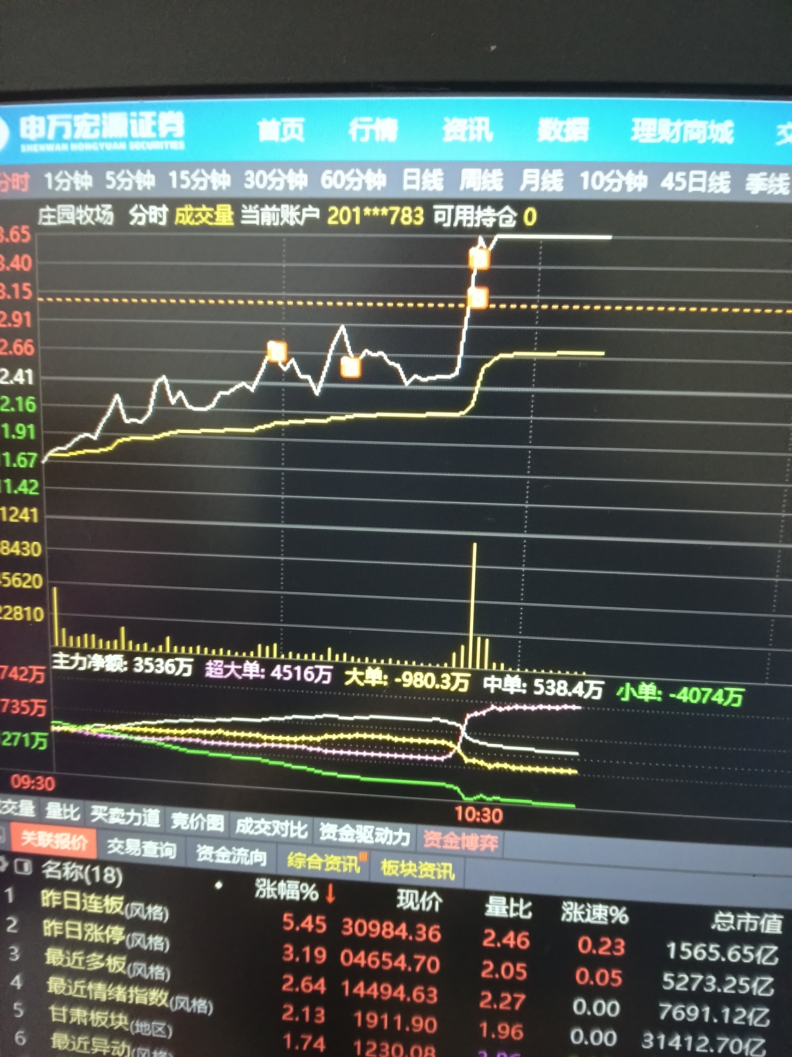 $庄园牧场(SZ002910)$ 不是我在拉升!只是跟着吃肉,坐顺风车!看这个手法我知道是谁,龙虎榜出来就知道了
