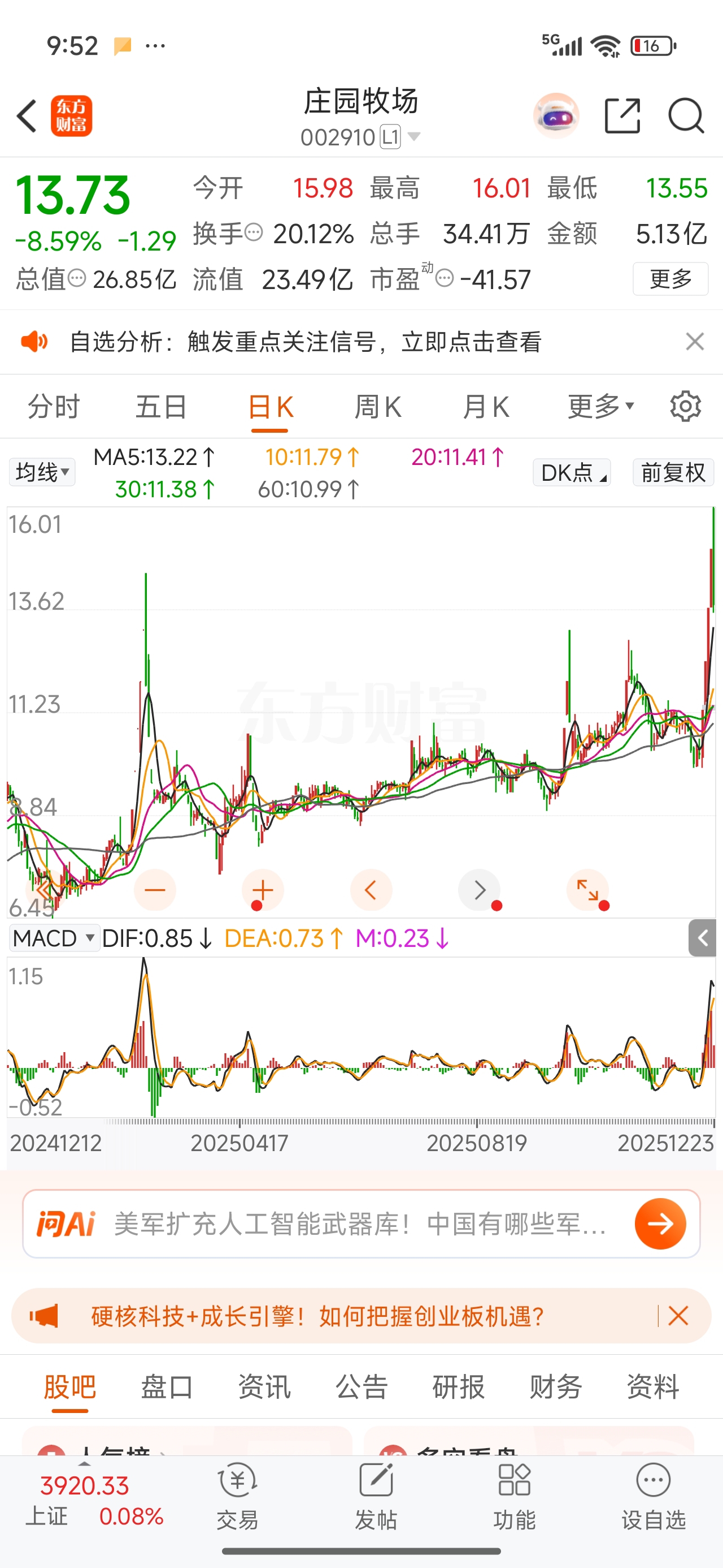 $庄园牧场(SZ002910)$ 一眼老庄股
