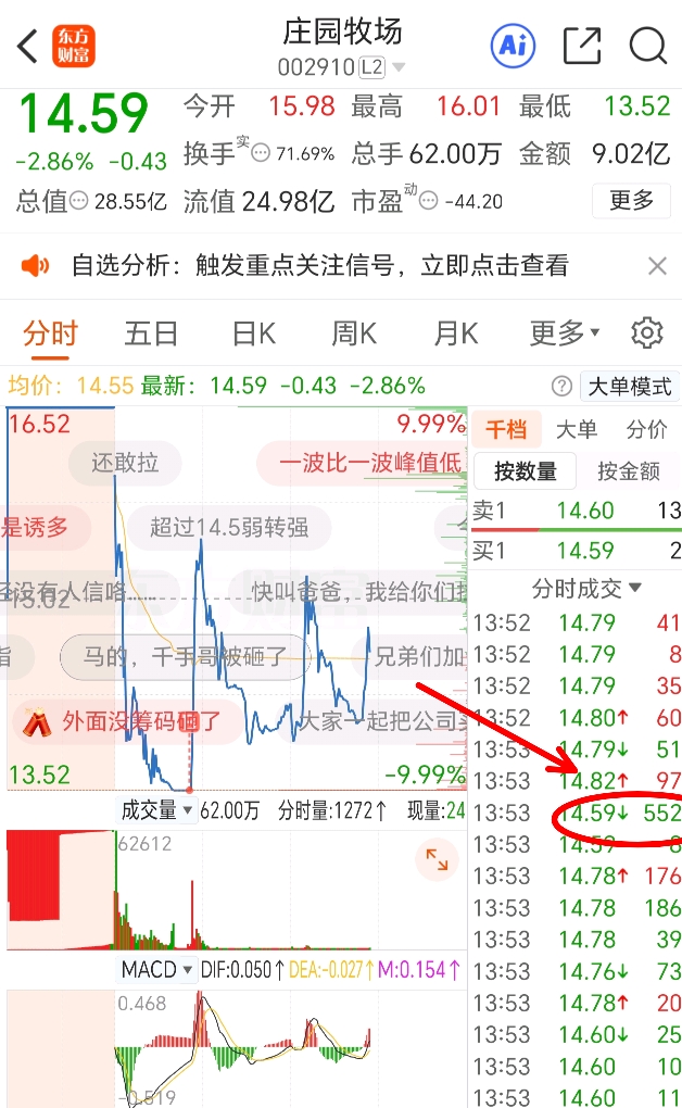 $庄园牧场(SZ002910)$ 千手哥一口一口往上吃,奈何被勾砸