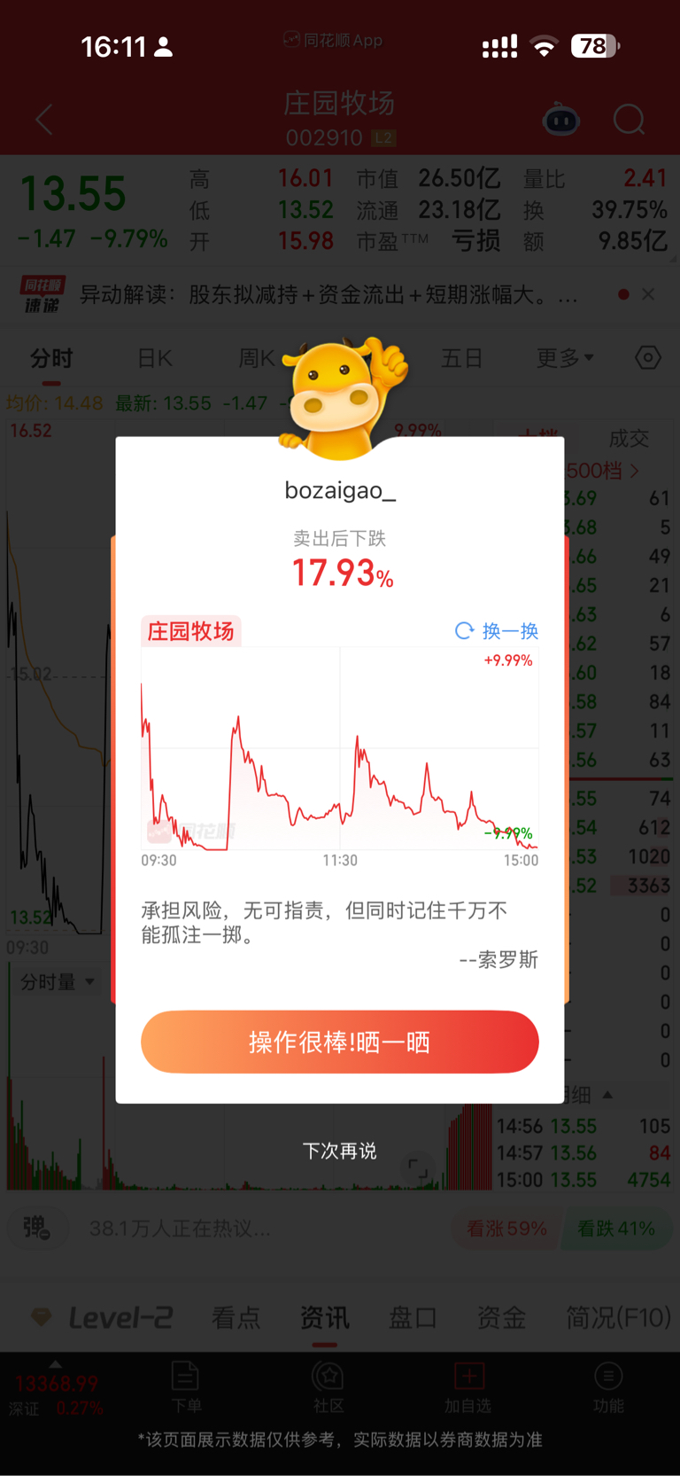 $庄园牧场(SZ002910)$ 遇到这种票竞价就得跑