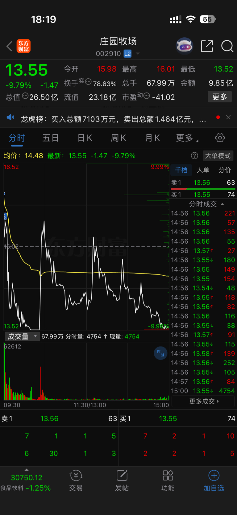 $庄园牧场(SZ002910)$ 接盘侠们今天亏了多少