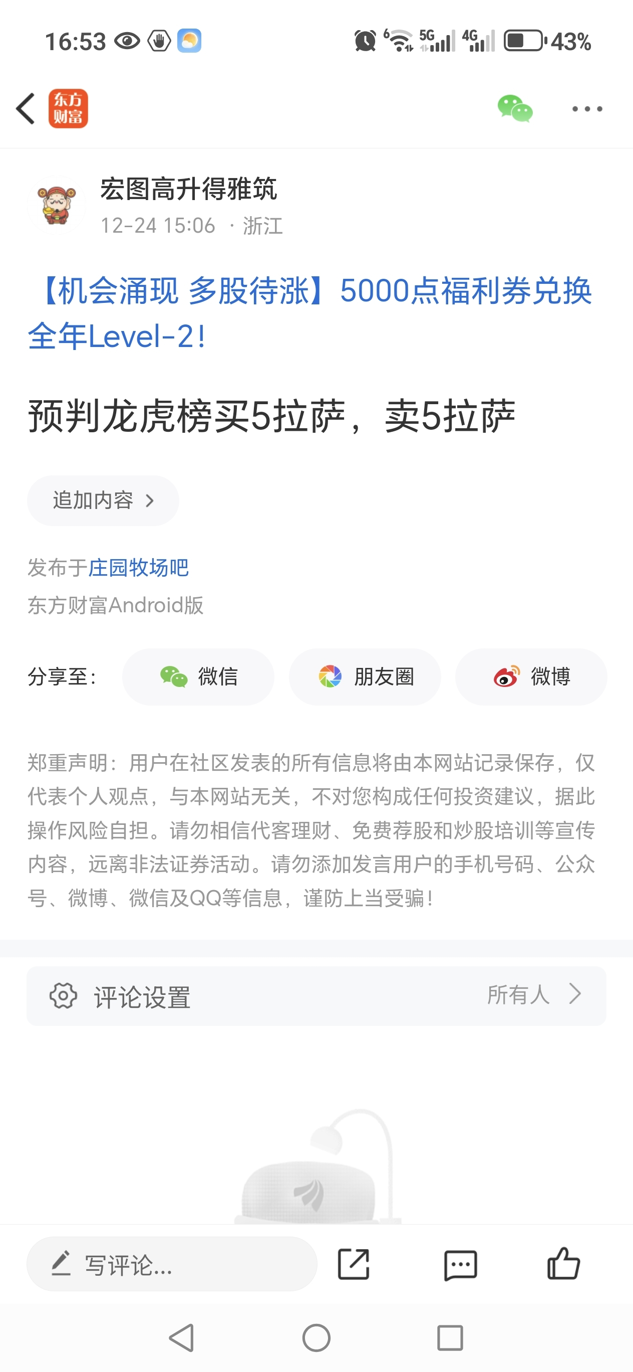 温馨提示: 1.根据《证券法》规定,禁止编造、传播虚假信息或者误导性信息,扰乱证券市场;2.用户在本社区发表的所有资料、言论等仅代表个人观点,与本网站立场无关,不对您构成任何投资建议。用户应基于自己的独立判断,自行决定证券投资并承担相应风险。《东方财富社区管理规定》