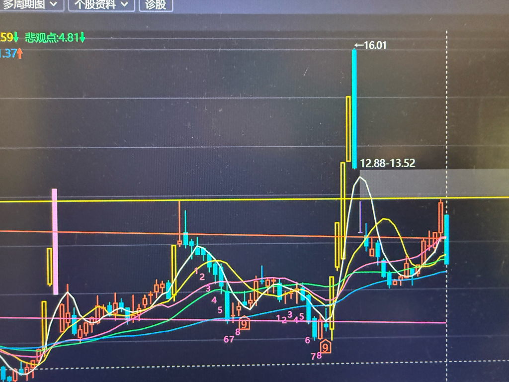 我的理解是…看到那根横着的黄色线了吧,前期三个压力位的位置,也就是说,昨天的涨幅