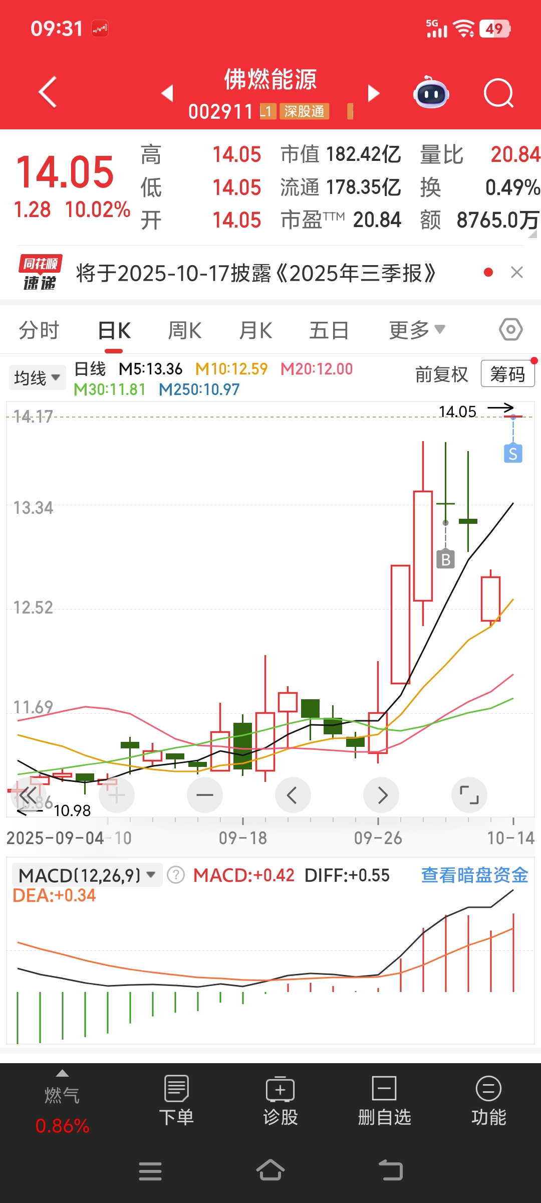 $佛燃能源(SZ002911)$ 啥情况,一字板了?真的假的?走了走了,落袋为安,反正是意外之喜