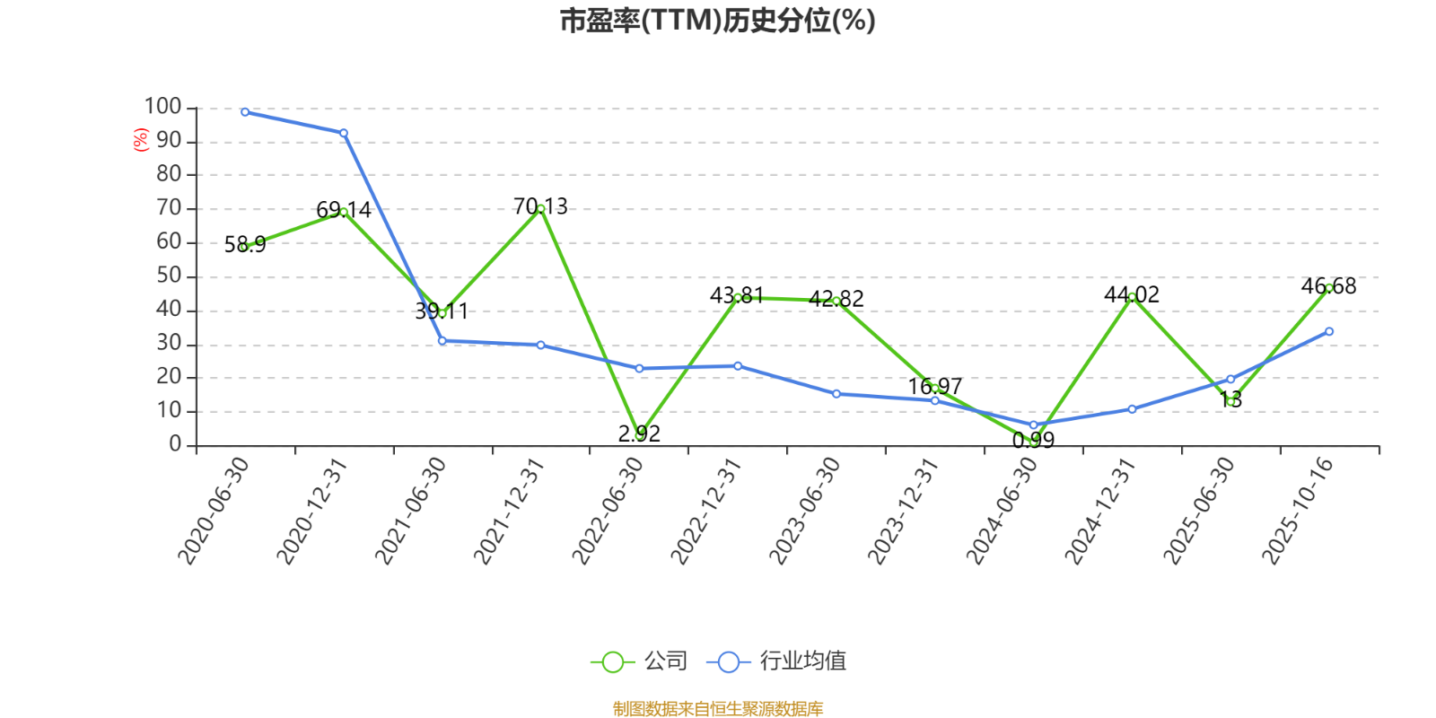 市盈率、市净率为负时,不显示当期分位数,会导致折线图中断。