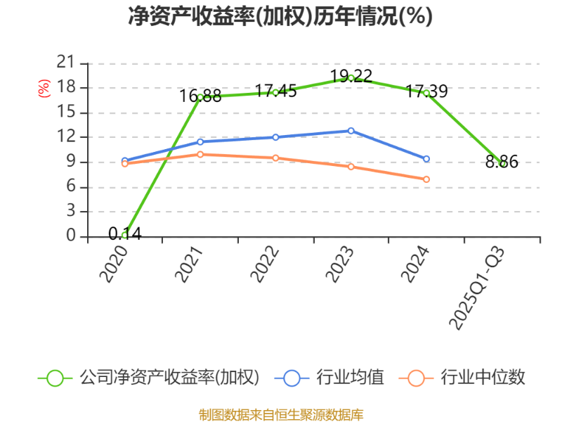 盈利能力方面, 2025年前三季度公司加权平均净资产收益率为8.86%,同比下降2.1个百分点。公司2025年前三季度投入资本回报率为4.18%,较上年同期上升0.11个百分点。