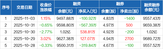 佛燃能源:融资净偿还100.92万元,融资余额9497.88万元(11-03)