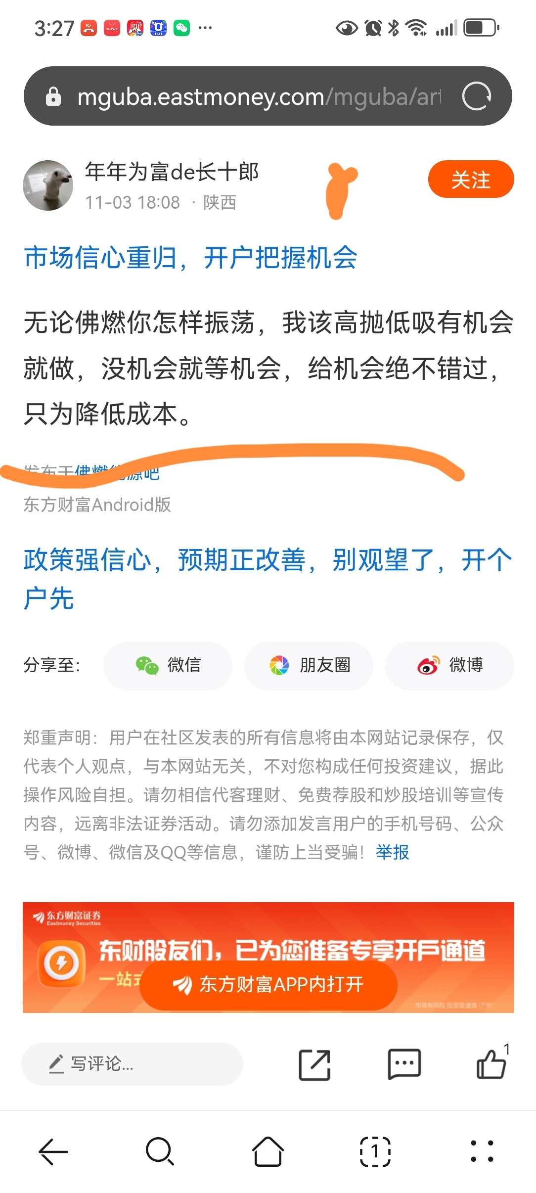 温馨提示: 1.根据《证券法》规定,禁止编造、传播虚假信息或者误导性信息,扰乱证券市场;2.用户在本社区发表的所有资料、言论等仅代表个人观点,与本网站立场无关,不对您构成任何投资建议。用户应基于自己的独立判断,自行决定证券投资并承担相应风险。《东方财富社区管理规定》