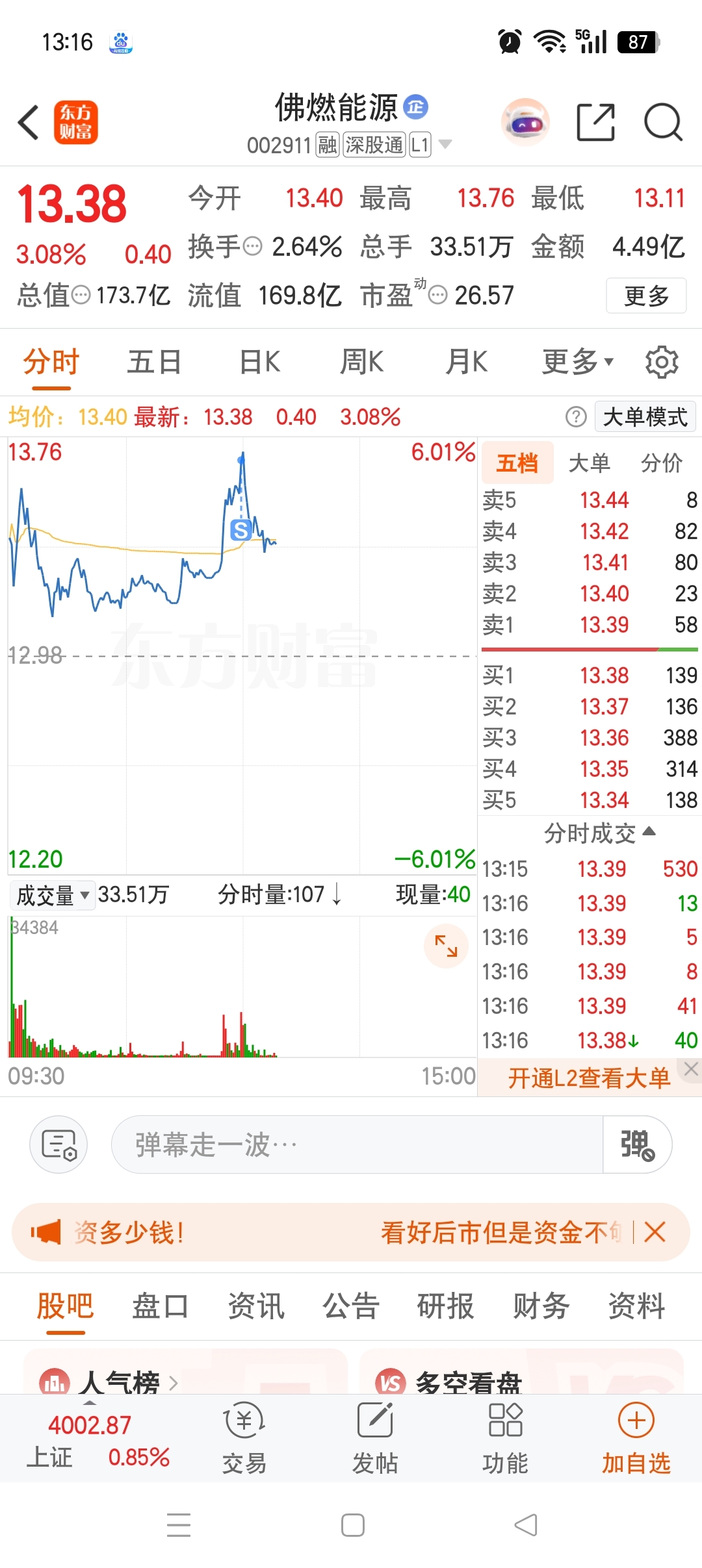 $佛燃能源(SZ002911)$ 对不起大家了,是我把股价砸下来的
