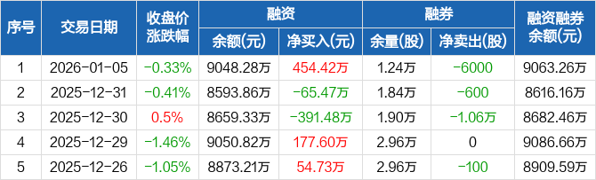 佛燃能源:融资净买入454.42万元,融资余额9048.28万元(01-05)