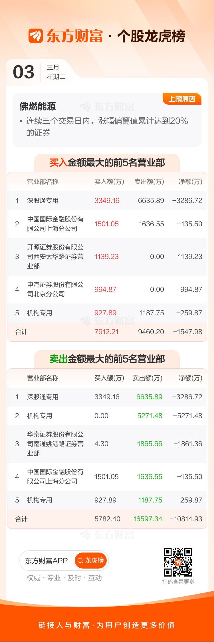 佛燃能源(002911)龙虎榜数据(03-03)