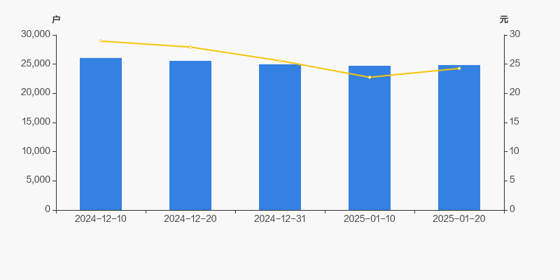 截至2025年1月20日,公司最新总股本为1.71亿股,其中流通股本为1.62亿股。户均持有流通股数量由上期的6562股下降至6529股,户均流通市值15.85万元。
