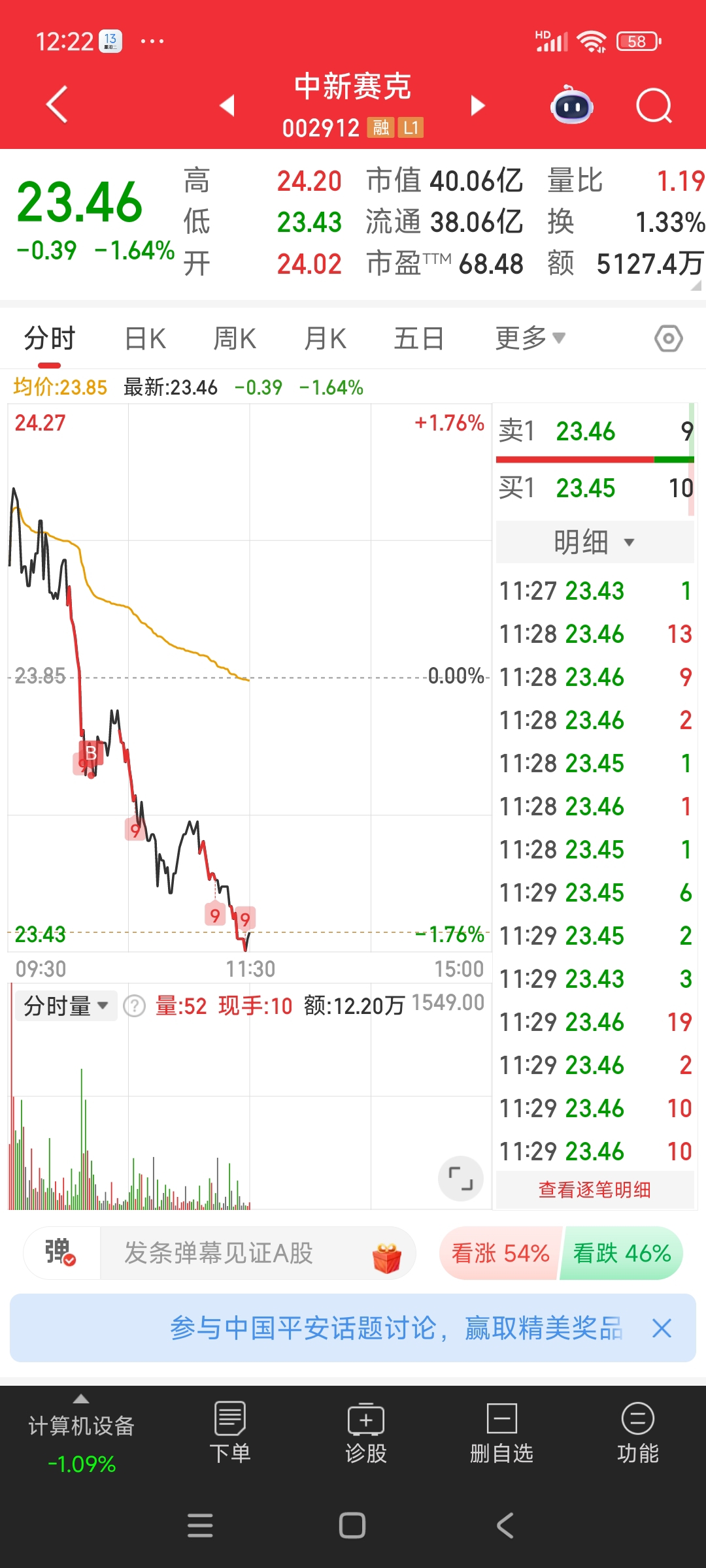 高开没跑,跌下来还加仓了,双倍的快乐,谁懂