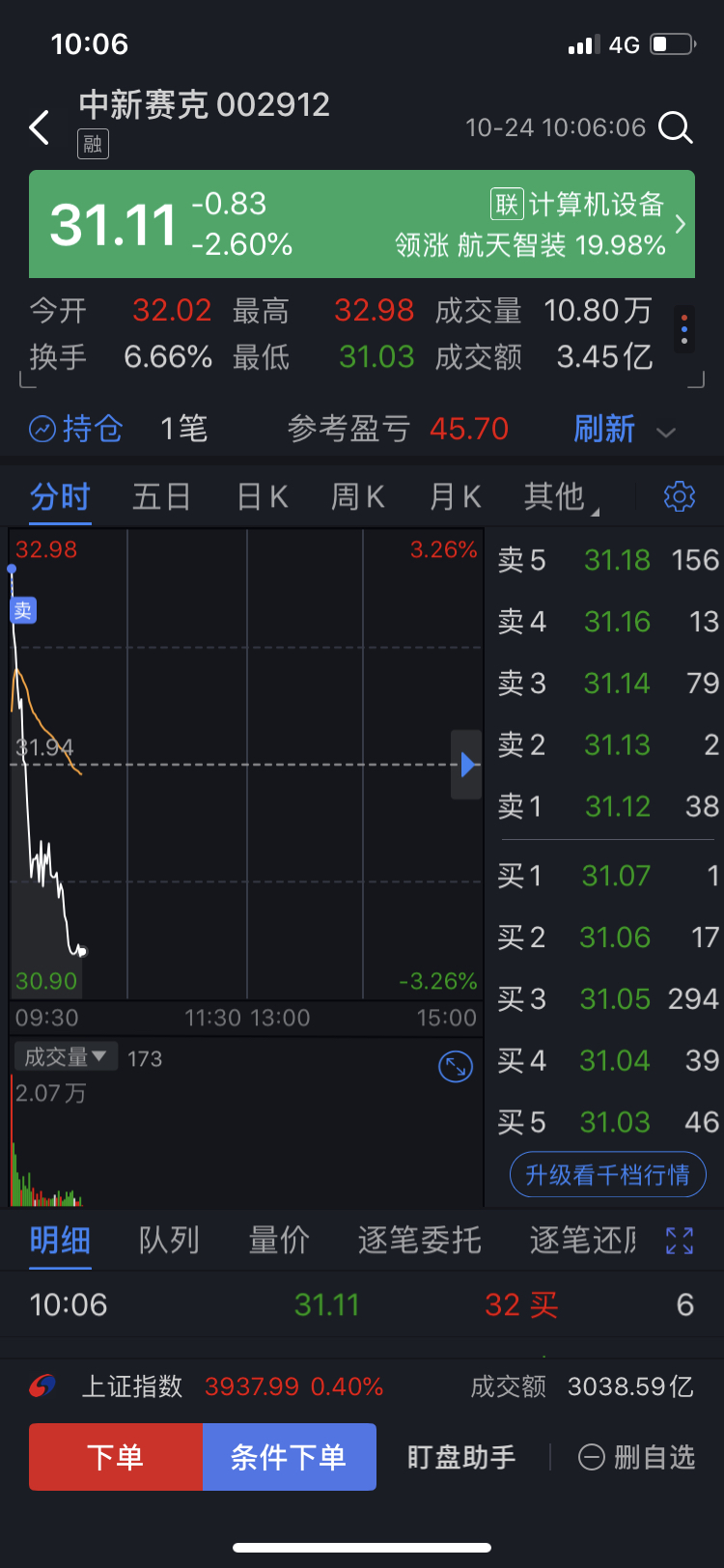 $中新赛克(SZ002912)$ 幸好开盘卖了