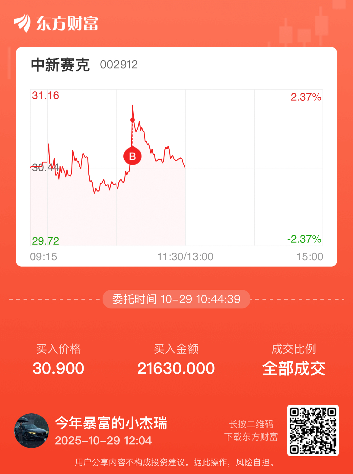 温馨提示: 1.根据《证券法》规定,禁止编造、传播虚假信息或者误导性信息,扰乱证券市场;2.用户在本社区发表的所有资料、言论等仅代表个人观点,与本网站立场无关,不对您构成任何投资建议。用户应基于自己的独立判断,自行决定证券投资并承担相应风险。《东方财富社区管理规定》