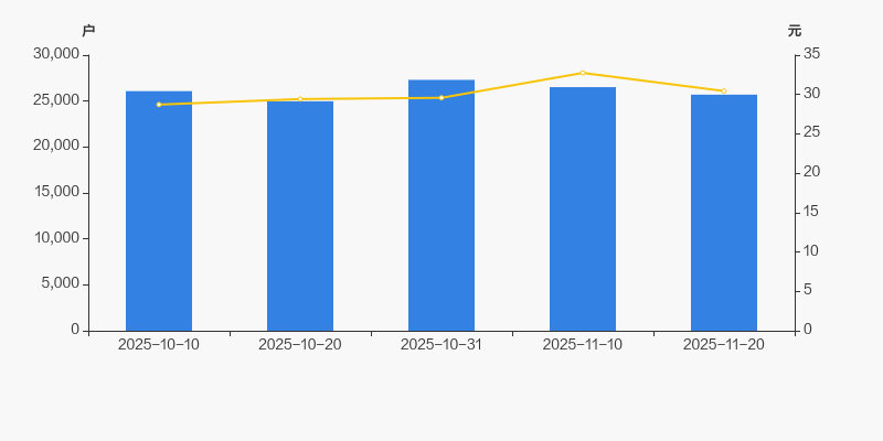 截至2025年11月20日,公司最新总股本为1.71亿股,其中流通股本为1.62亿股。户均持有流通股数量由上期的6118股上升至6313股,户均流通市值19.22万元。